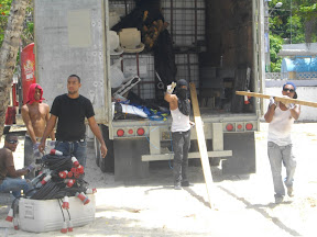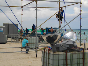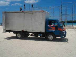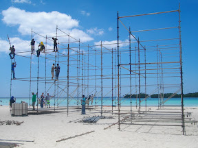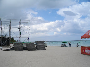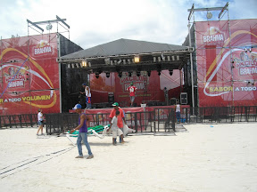 Joooo... Es sollte ein Strandkonzert geben mit den ganz Großen der Musikszene aus der DomRep... Der Aufbau der Bühne verlief schon mit sehr modernen Metallgerüst aber dauerte unserer Ansicht nach ziemlich lange wobei wir einen Tag vorm Konzert nichtmal glaubten das die Bühne überhaupt noch fertig werden würde... Aber wir wurden eines besseren belehrt...