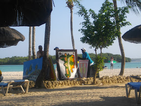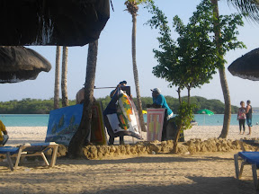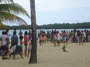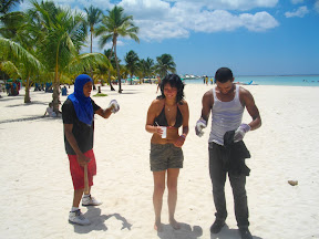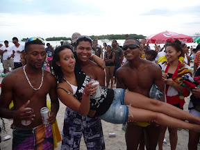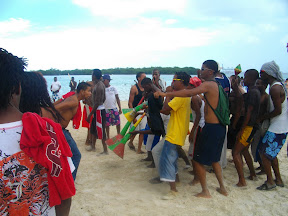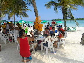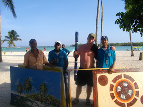Boca Chica ist unter anderem nicht nur für Urlauber aus weiter Ferne ein Erholungsort... Zum Wochenende füllt sich das sonst eher ruhige Örtchen mit eine unüberschaubaren menge an Einheimischen die ihr Wochenende dort geniessen möchten. Zu diesem Tag haben sich nach Informationen von einem sehr netten Kellner im Dominican-Bay ca. 1700 Gäste aufgehalten. Dementsprechend besetzt waren dann auch die beiden großen Hoteleigenen Pool´s und das Meer wo sich der Meeresspiegel um glatte 5 cm anhob wenn alle im Wasser waren ;-) Unter anderem haben wir erleben dürfen wie sich die Einheimischen am Strand mit einem Tanz beschäftigt haben wobei man deutlich erkennen konnte wie viel wir von unseren Mitmenschen in sachen Freizeitbeschäftigung noch lernen können... Abends ging es dann für uns auf die Partymeile von Santo-Domingo wo ne Straße nur mit Bar´s und Diskos versehen ist... Man glaubt garnicht auf was für einen Modernen stand das Land doch ist... Achja... Das Presidente gibts in 2 Variationen... Das Presidente Light ist für Weicheier da es nur ca 4.3% Alc. hat und das normale Presidente dagegen 5,0% Alc.Straaaaaaaaaand-Taaaaag (wie jeden Tag)... Es gibt Tage da muss ein Deutscher den Einheimischen mal Zeigen wie man Handelt und Verkauft... Naja ich habs zumindest probiert... Außerdem gabs einen Mamajuana-Abend sowie Schatzis Karaoke-Auftritt... Einige Abende haben Schatzi und Ich versucht die Hotel-Disse unsicher zu machen... Schatzi auf der Tanzfläche und ich die Bar... jeder hatte Erfolg... Leider war auch der Tag dabei an dem Chenk sein letzten Abend mitfeierte... Chenk ist einmalig... er hatte Humor und war ein sehr guter Tänzer... Ah ja und das schnellere Jet-Ski hatte er auch :-( hihihi... Der Abschied viel ihm nicht leicht nachdem er bemerkt hatte das man mit uns gut Feiern und Lachen konnte... wir hatten uns auf Englisch mit ihm verständigt wobei ich sagen muß dass umso später es wurde desto mehr kam mein Englisch aus mir hervor wenn ihr versteht was ich meine *ggg*... Ja hier auch gleich noch an die beiden "Sisters" liebe Grüße... Die eine aus Florida und die andere aus Pennsylvania... Oh was war ich "traurig" als ich hörte das die beiden soooooo weit voneinander getrennt leben hihihihi die waren ja sooooo lieb...