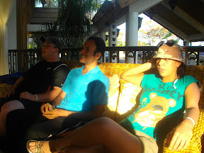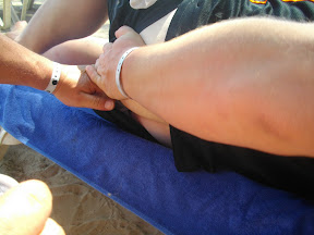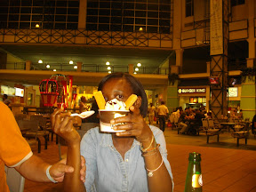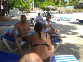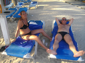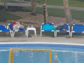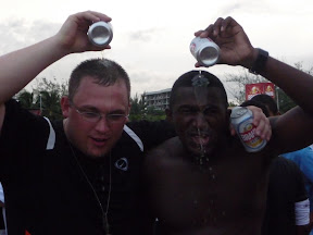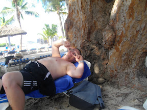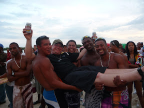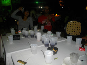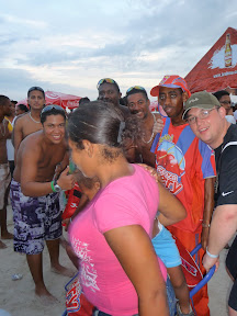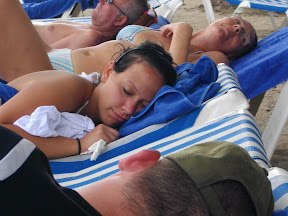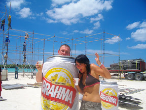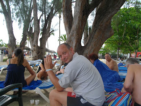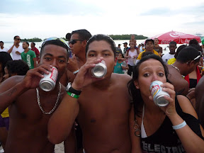 Nach der Extrem-Disco mußte noch für ein paar Minuten die Strandliege vollgesabbert werden um dann für das große Event startklar zu sein... Das Konzert war ein riesen Erfolg und hat auch den letzten Partymuffel von der Liege gestoßen... Als Schatz und ich einen Standortwechsel vornehmen wollten waren doch glatt unsere Brasielianischen Freunde schon einen Umtrunk nehmen so das wir doch nicht nein sagen konnten und bei ihnen stehen blieben um gemeinsam zu Feiern... Ein bisschen Deutsche Feier-Kultur wollte ich ihnen als Erinnerung schon mit nach Hause mitgeben und hab mal Bier-Spielchen veranstaltet ;-) Naja und sie dankten es uns beiden mit einer "Siegerehrung" hihihihi also wenn ihr mal im Urlaub zum Feiern sucht, müßt ihr euch nur an unsere Brasielanischen Freunde wenden ;-)... Oh jaaaa dann bekommt Ihr ne Party mit "schlaf-unter-der-Palme"-Garantie ;-)